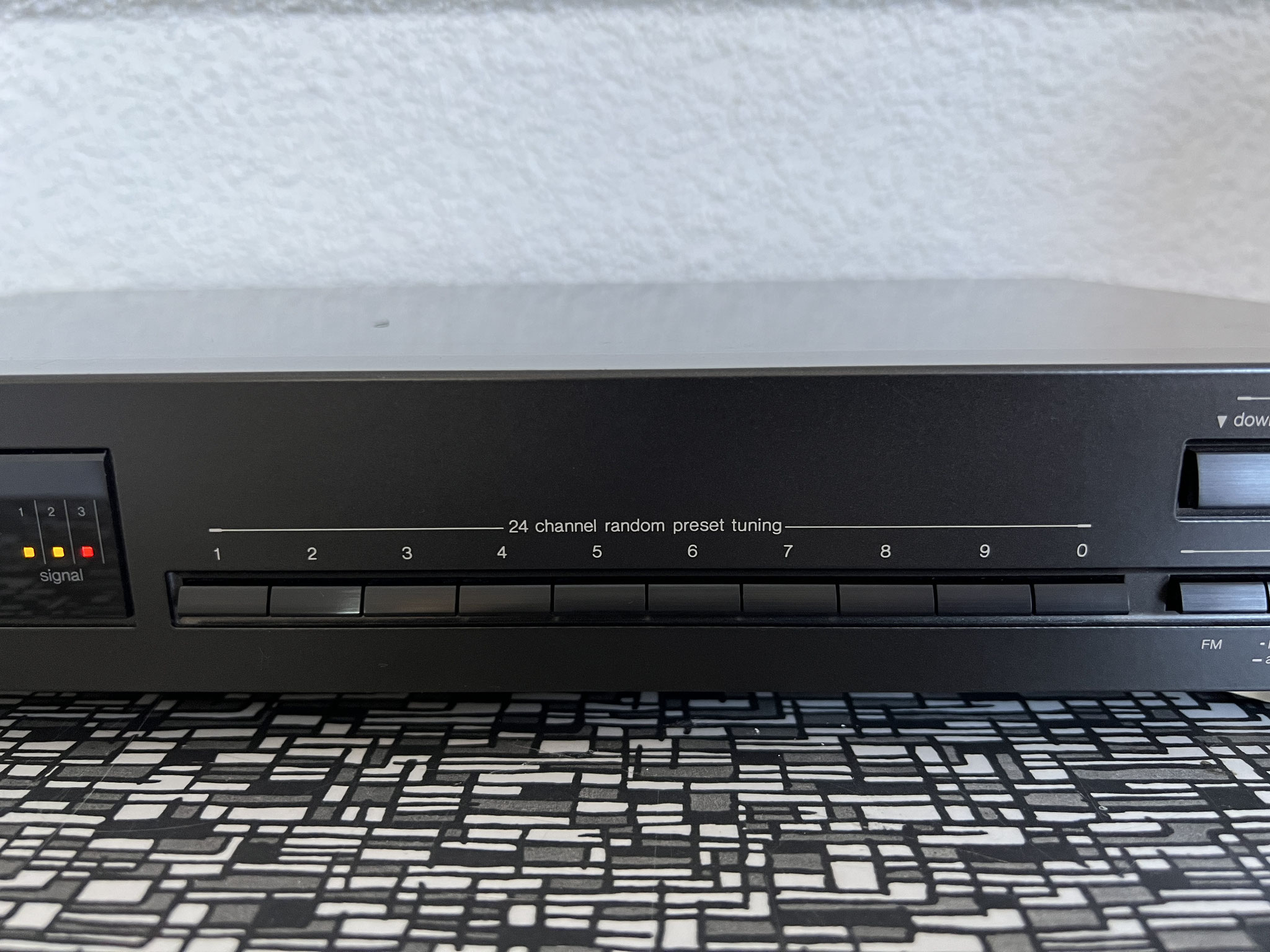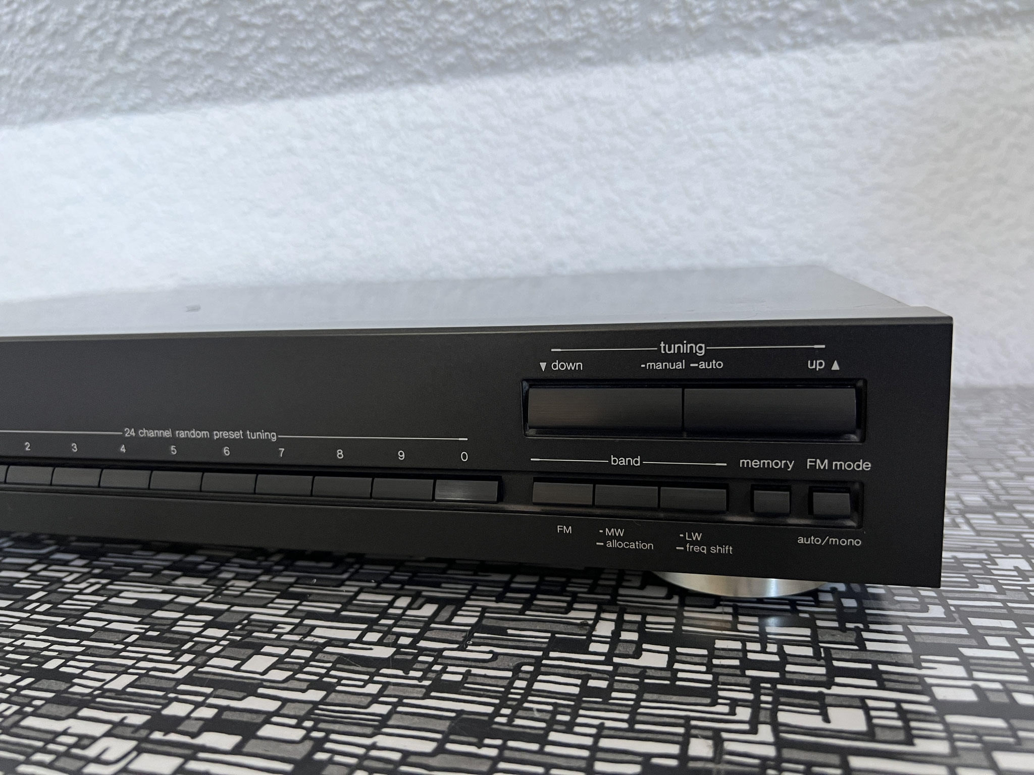 Wunderbar erhaltener und hochwertiger 2-Band-Tuner mit AM/FM sowie RDS. Digitalanzeige (Quartz Synth), Feldstärkenanzeige und programmierbare 30 Presets. Sehr